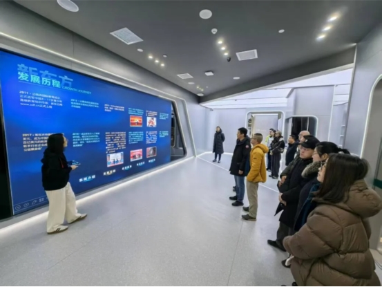 活动当天,东城科技馆行政团队走进新东方智慧中心,实地参访并沉浸式体验了AI互动教学系统等前沿智慧教学工具。